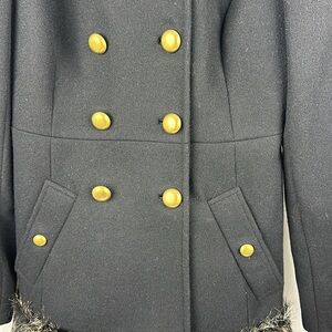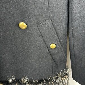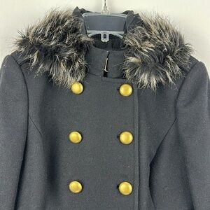Rachel Zoe 100% Wool Military Style Faux Fur Trim Midi Coat
