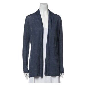 Rachel Zoe 100% linen M navy blue open front cardigan sweater lightweight.