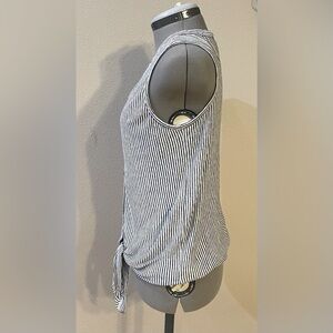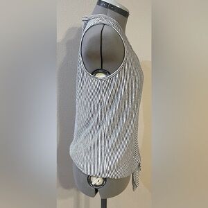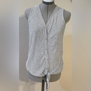 Rachel Zoe 100% linen Tie Top Size Medium Tank Button-up Navy Blue White Stripes
