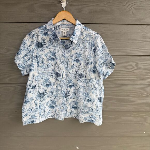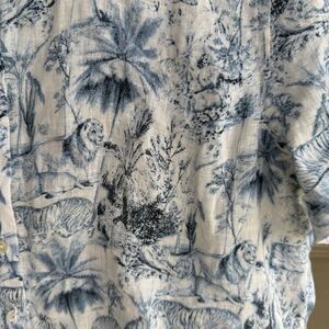 Rachel Zoe 100% linen tiger print short sleeve button front shirt