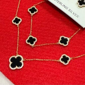 Rachel Zoe Onyx 18K Gold Sterling Clover Motif Jewelry Set