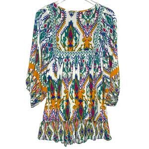 Rachel Zoe 1X Womens Plus Floral Boho Tunic Multicolor Ruffle Peasant