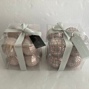 Rachel Zoe 2 Boxes of 8 Each Light Pink & Silver Ornaments New in Box
