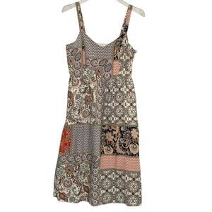 Rachel Zoe 6 Linen Patchwork Sleeveless Dress Paisley Floral Pockets Midi