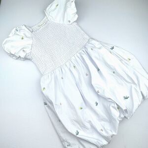 Rachel Zoe KIDS white embroidered bubble dress, in girls size 6x. Multicolored delicate embroidered floral/flowers/botanical pattern. Short puff/bubble sleeves, smocked chest/waist. Lined. Dressy; perfect for Easter, church, baptism, party, christening, birthday, concert, special occasion, the holidays. Can be worn as casual with sandals or cute sneakers. Summer, spring.