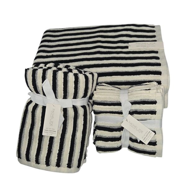 Rachel Zoe 8pc Cream And Black Striped Cotton Towel Set 2 Bath 4 Wash 2 Hand Quick Dry
