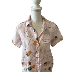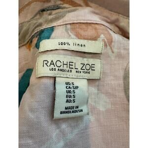 Rachel Zoe Abstract Floral Print Linen Shirt Dress Light Pink, size S. Perfect casual relaxed dress in 100% linen! Short sleeves, collar and button front and pockets