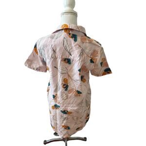Rachel Zoe Abstract Floral Print Linen Shirt Dress Light Pink S