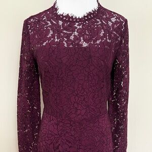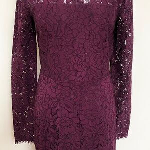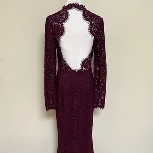 Rachel Zoe Angie Fig Purple Lace Open Back Long Sleeve Gown Dress