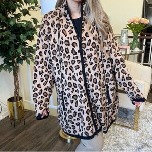 Rachel Zoe Animal Print Longline Zip Up Cardigan Knit Sweater Casual Warm 3X
