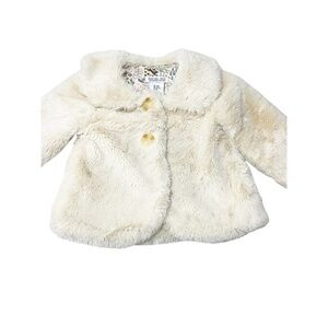 Rachel Zoe Baby Girls Faux Fur Coat Cream Ivory 12M Woodland Lining Snap Closure