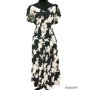 Rachel Zoe Back and White Floral Maxi Dress size Large