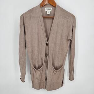 Rachel Zoe Beige 100% Linen Knit Button Front Cardigan Sweater Quiet Luxury Preppy Office Closet Staple