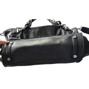 Rachel Zoe Black Faux Leather Shoulder Bag Removable Strap Silver Hardware Ziip