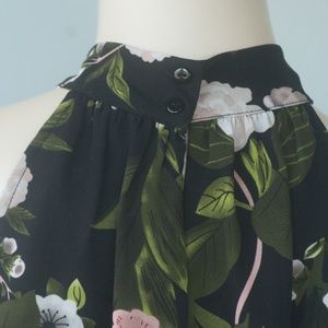 Rachel Zoe Black Floral High Neck Open Back Blouse Top