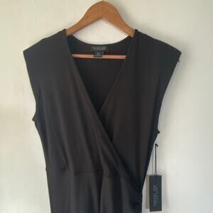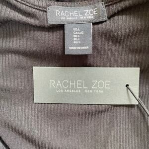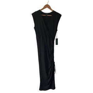 Rachel Zoe Black Midi Dress L Ribbed Knit Ruched Side Sleeveless Bodycon Stretch New With Tag