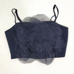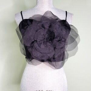 Rachel Zoe Black Oversized Organza Flower Crop Top