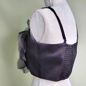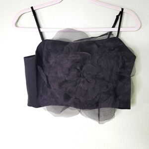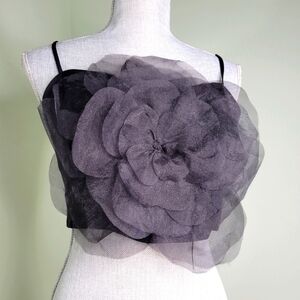 Rachel Zoe Black Oversized Flower Organza Crop Top Adj Straps Dress Event Med