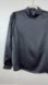 Satin black pullover blouse has five button closure at left shoulder and mock neck. Puffed long sleeves gathered at shoulders and wrists have single button closure on cuffs. All buttons are covered in matching black satin fabric. Fabric has subtle luster for a sophisticated look. Wear it for work, gala, party. Classic styling makes it easy to dress up or down. Spare button attached.