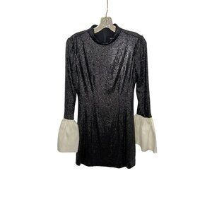 Rachel Zoe Black Sequin Mini Dress with White Flared Cuffs - Size 0
