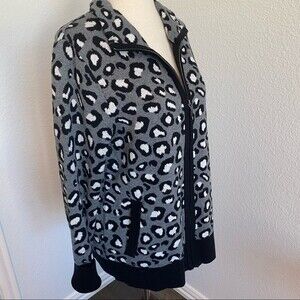 Rachel Zoe Black Silver Gray Animal Print Zip Front 2 Pocket Sweater Jacket M
