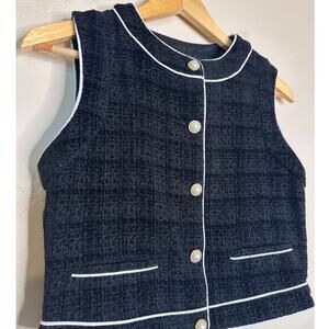 Rachel Zoe Black Vest with White Pipping and Pearl Buttons 2