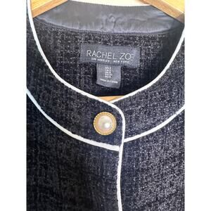 Rachel Zoe Black Vest with White Pipping and Pearl Buttons size 2. Like new condition. GORGEOUS fall/winter must-have piece! Lightweight, soft and very comfortable. Black textured material, lined, white piping accent.