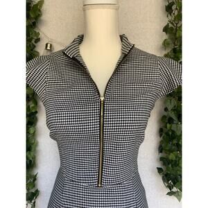 Rachel Zoe Black and White Shepherds check Half Zip Up Mini Dress Women's 6