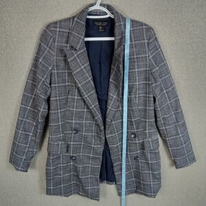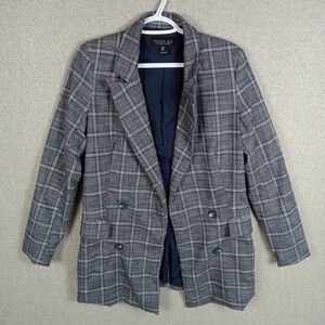 Rachel Zoe Blazer Womens Small Gray Plaid Double Breasted Open Front Long Sleeve