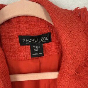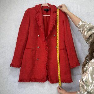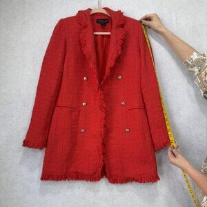 Rachel Zoe Blazer Womens XS Red Tweed Fringe Double Breasted Gold Buttons Jacket