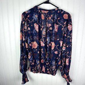 Rachel Zoe Blouse Floral Print Size Small Blue and PInk