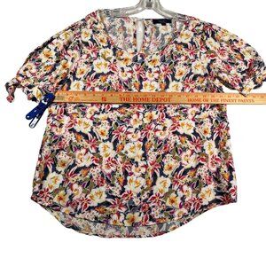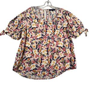 Rachel Zoe Blouse Womens L Multicolor Floral Print Puff Short Sleeve Scoop Neck