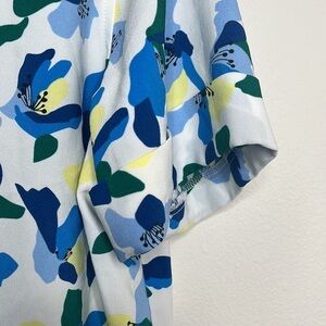 Rachel Zoe Blue Yellow Floral Button Up Oversized Shirt Sz L