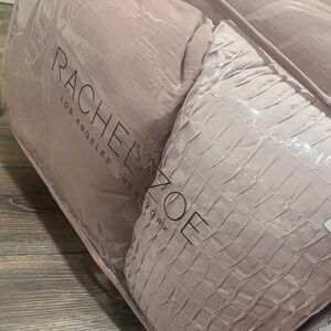 Elevate your bedroom with this chic Rachel Zoe comforter set. Soft blush tones offer a stylish and cozy feel.