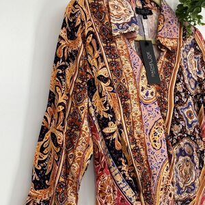 Rachel Zoe Boho Cropped Wrap Top Collared Multi XS New