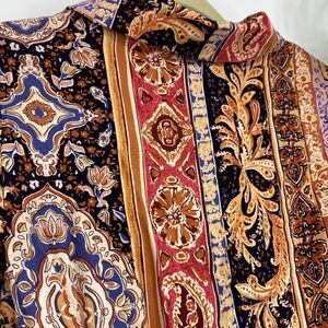 Rachel Zoe Boho Cropped Floral Paisley Wrap Top Collared