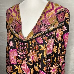 Rachel Zoe Black Pink Gold Floral Semi-Sheer Flowy Boho Blouse