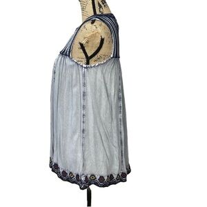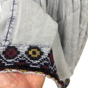 Rachel Zoe Boho Hippie Top Blue White Rayon Tassels Gypsy Hippie Festival Tunic