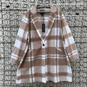 Rachel Zoe Brown Cream Plaid Print Peacoat Single Button Wool Blend 3X NWT