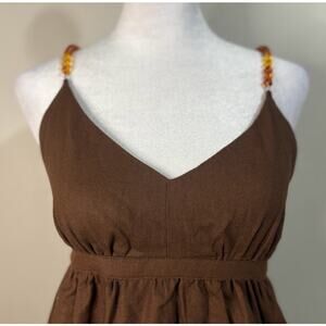 Rachel Zoe Brown Linen Blend Halter Top Beaded Straps Size XS NWT