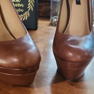 Stylish brown platform heels. Perfect for adding height and elegance.