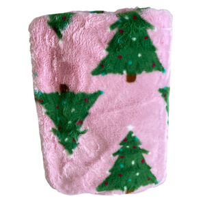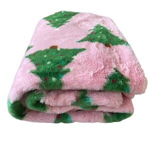 Rachel Zoe CHRISTMAS TREE Throw Blanket Faux Fur 50x70 Pink Green
