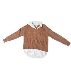 Rachel Zoe Cable Knit Twofer Shirt Sweater Vest Brown Womens M Preppy Academia