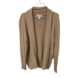 Rachel Zoe Cardigan LARGE Tan Open Front Fleece Knit Sherpa Cozy Minimalist Boho