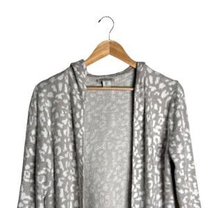 Rachel Zoe Cardigan Leopard Print Gray Size Small Hooded Pockets Oversized Cozy