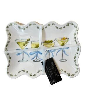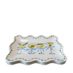 Rachel Zoe Cocktails & Bows Melamine Appetizer Plates 9x6 Set of 4 Scalloped NEW