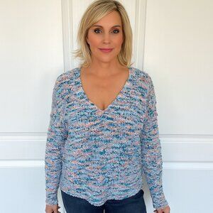 Rachel Zoe Confetti Popcorn Knit V-Neck Sweater | Size Large | Cozy & Chic