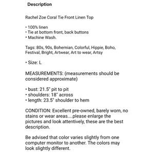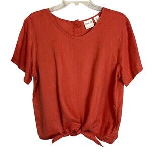Rachel Zoe Coral Tie Front Linen Top Women's Size L Summer Top Vacation Vibes
