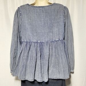Rachel Zoe Cotton Embroidered Denim Gauze Textured Baby Doll Pop Over Blouse (M)