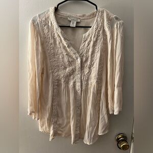 Rachel Zoe Cream 3/4 Sleeve Boho Ruffled Blouse, size 1X